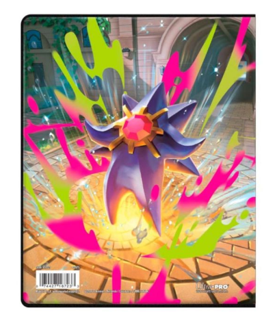 4-Pocket Portfolios for Pokémon feature a vibrant, full-art cover of Meowth and back cover of Mega Starmie. Each portfolio stores and protects up to 40 standard size cards single-loaded and 80 cards double-loaded in archival-safe pages. There are also pages in the center of the portfolio to store up to 4 oversized Pokémon cards. Made in California, U.S.A.