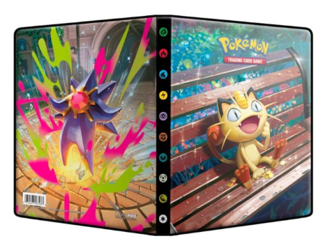 • Officially licensed Pokemon Trading Card Game 4-Pocket Portfolio featuring Meowth and Mega Starmie