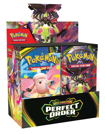 The pulse of the city beats in sync with the Pokémon and people who call it home—and preserving the order of it all is Mega Zygarde ex, the Legendary Pokémon who embodies strength in numbers! With threatening forces held at bay, peaceful days are ahead for the city’s residents, including Pokémon like Mega Clefable ex, Mega Starmie ex, and Meowth ex, in the Pokémon TCG: Mega Evolution—Perfect Order expansion!