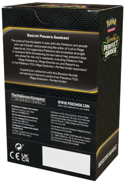 The pulse of the city beats in sync with the Pokémon and people who call it home—and preserving the order of it all is Mega Zygarde ex, the Legendary Pokémon who embodies strength in numbers! With threatening forces held at bay, peaceful days are ahead for the city’s residents, including Pokémon like Mega Clefable ex, Mega Starmie ex, and Meowth ex, in the Pokémon TCG: Mega Evolution—Perfect Order expansion!