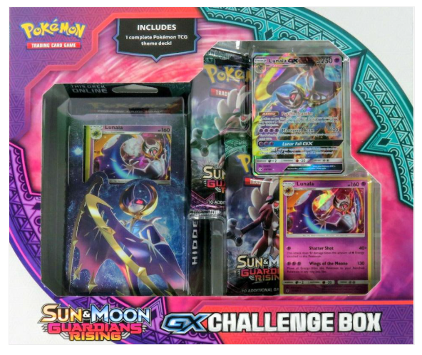 Stand tall with the amazing attacks of Pokémon-GX! This outstanding Pokémon TCG collection combines the power of Legendary Pokémon-GX with a ready-to-play theme deck and two booster packs. Spread your wings with Lunala-GX, and expand your collection with this exciting Challenge Box!