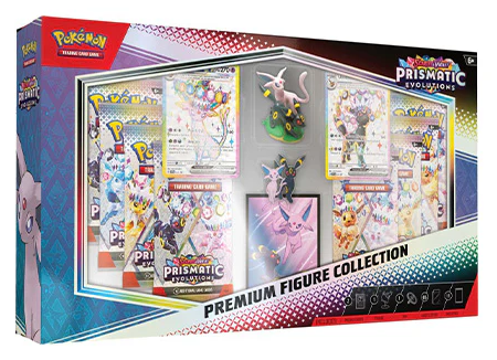 The Pokemon TCG: Scarlet & Violet—Prismatic Evolutions Premium Figure Collection includes: